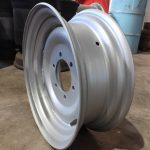 Aro de acero de 15 pulgadas de diámetro y 6 pulgadas de ancho, diseñado para aplicaciones agrícolas que requieren tracción y estabilidad en terrenos variados.